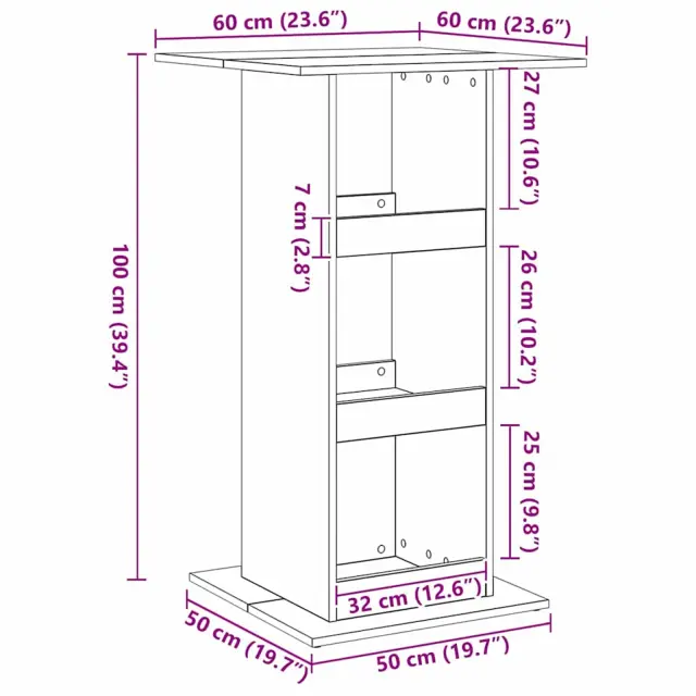 vidaXL Barska miza Črna Orehovina 60 x 60 x 100 cm Konstruiran les