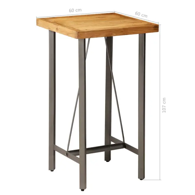 vidaXL Barska miza iz trdne predelane tikovine 60x60x107 cm