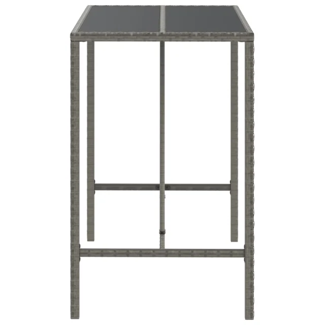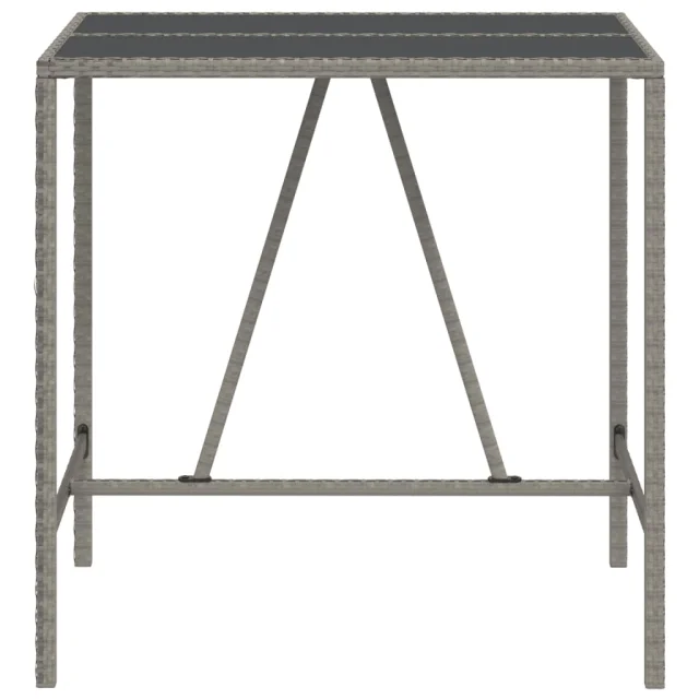 vidaXL Barska miza s stekleno ploščo siva 110x70x110 cm poli ratan