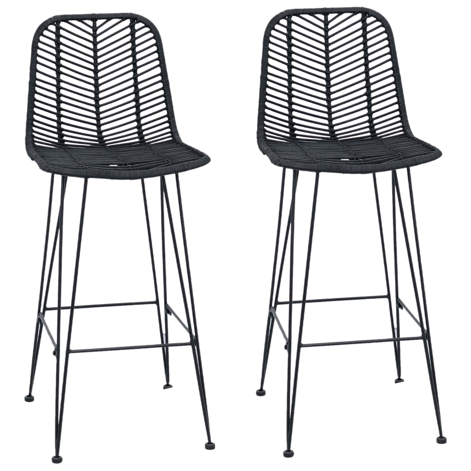 vidaXL Barski stol 2 pcs Črna 44,5 x 53 x 111 cm Ratan in železo