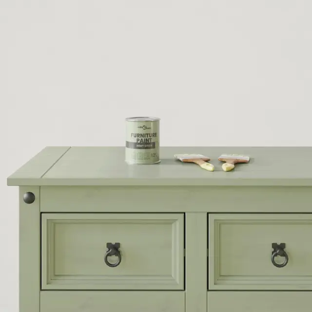• Vzdržljiv zaključek Ta barva za pohištvo je ustvarjena, da zmore čas in uporabo ter zagotavlja dolgo življenjsko dobo na notranjih površinah. Njena vzdržljivost jo naredi idealno tudi za prostore z veliko obiskovalci in dekorativne kose.