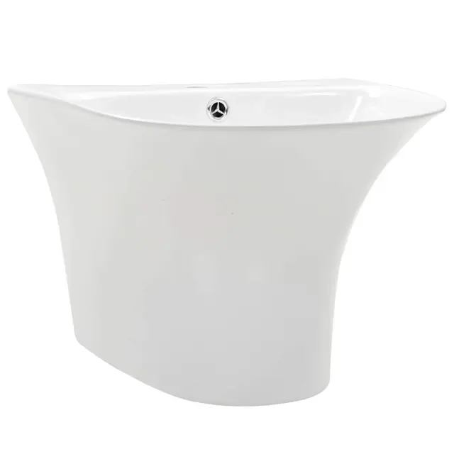Ta sodoben kopalniški umivalnik iz kakovostne glazirane keramike oddaja moderno eleganco, ki se lepo ublaži v vse vrste kopalniških slogov. Zasnovan je za notranjo rabo in ponuja odlične lastnosti v elegantnem in minimalističnem slogu, idealen za tiste, ki cenijo tako obliko kot funkcionalnost. Njegova simetrična zasnova s čistimi linijami in belo površino ustvari vizualno privlačno središče v vsakem prostoru. Kompaktna velikost se popolnoma prilega različnim kopalniškim konfiguracijam, kar omogoča učinkovito izrabo prostora in izboljšuje celoten videz kopalnice.