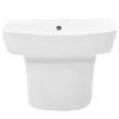 Ta moderni kopalniški umivalnik se ponaša z minimalističnim dizajnom, ki naravno izboljša videz in uporabnost vsake sodobne kopalnice. Združuje stil in pragmatičnost, njegova elegantna bela površina opozarja na sofisticiranost, majhne dimenzije pa omogočajo enostavno prileganje v različne kopalniške konfiguracije. Odlično se obnese za ljudi, ki iščejo stilske rešitve za manjše prostore, saj nudi priročnost, ne da bi ob tem izgubil estetski videz.