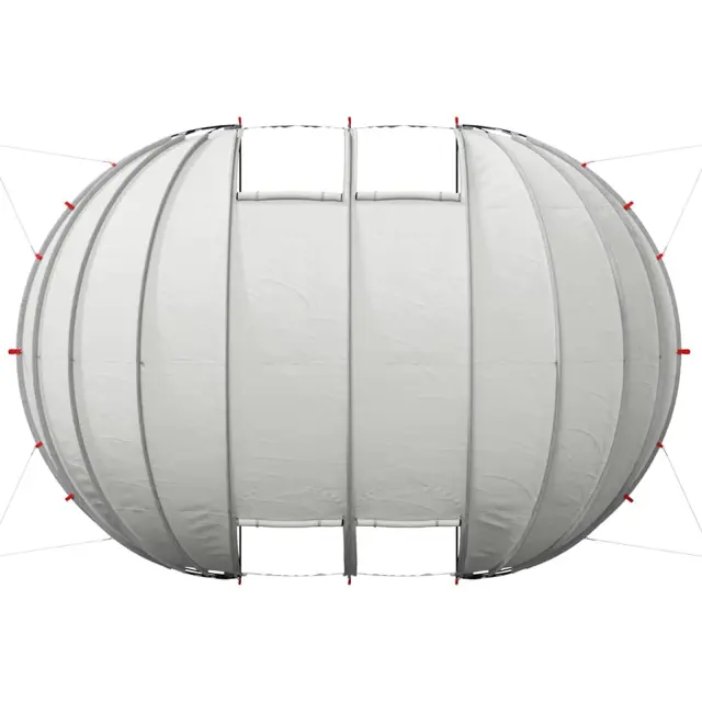 • Lastnosti: Opremljen z zložljivimi vrati na zadrgo, ta šotor omogoča urejen dostop in kroženje zraka. Pokrov bazena zmanjša izgubo toplote, kar ohranja tople temperature vode. Oblika vključuje tudi vodila za večjo stabilnost, kar nudi trdno oporo proti vetru.