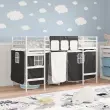 Ta loft postelja za otroke z zavesami je zasnovana tako, da vsako sobo spremeni v moderno in uporabno okolje. S prenosom spalnega prostora nad tla osvobodi dragocen prostor za igro in kreativnost. Kovinski okvir postelje in eleganten dizajn prinašata prijeten občutek in otroško estetiko. Zasnova z zavesejo doda spodnjemu delu občutek zasebnosti. Idealna za otroke, ki uživajo v igrah in pustolovščinah, ta loft postelja ne le da obogati sobo, temveč tudi optimizira prostor za igro.