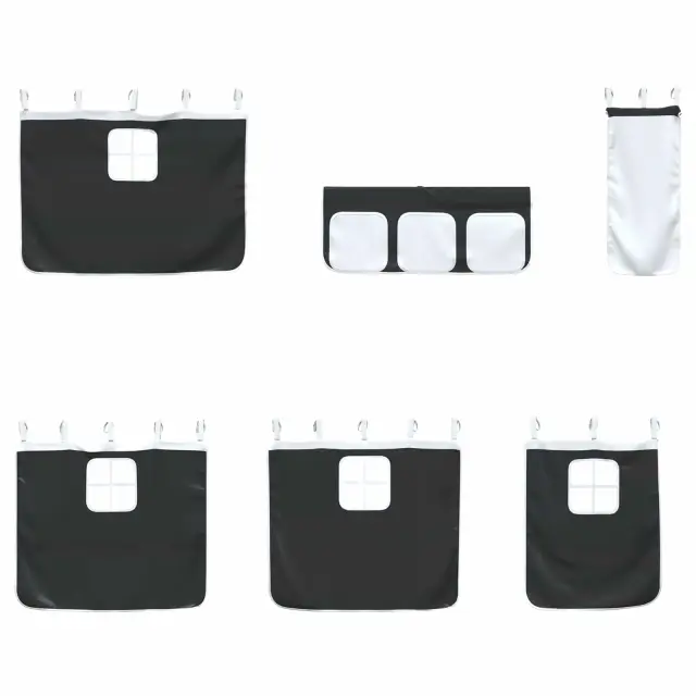 • Privatnost s stilom: Zasnova vključuje zavese iz dihalnega materiala, ki omogočajo enostavno odpiranje in zapiranje ter dajejo otroku občutek zasebnosti. Te elegantne črne zavese so lepo integrirane v okvir, kar ustvarja popolno skrivališče.