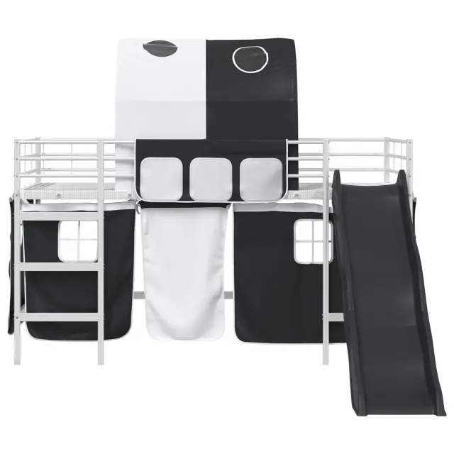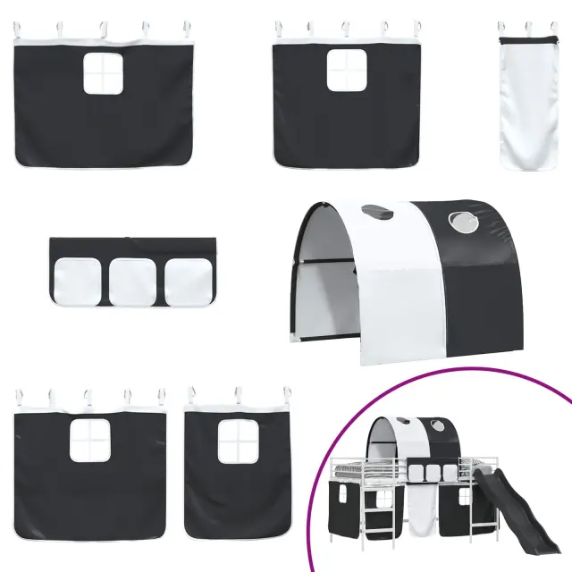 Otroški pograd s draperijami, lokom in toboganom je zasnovan za združevanje zabave in funkcionalnosti, kar ustvari čarobno mesto za spanje, ki ga otroci naravnost obožujejo. Izdelan za sodobne domove, ta pravokotni pograd ima eleganten videz, ki se brez težav prilega v katero koli spalnico. Uporaba trpežnih materialov, skupaj z zabavnim toboganom in prilagodljivimi draperijami, nudi privlačno okolje za počitek in igro. Črna in modra barvna shema dodaja cool in sodoben pridih, kar ga naredi kako praktičnega, tako tudi vznemirljivega dodatka v prostoru.