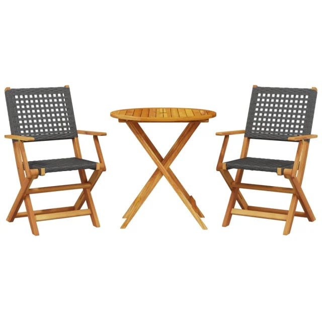 vidaXL Bistro garnitura 3-delna črn poli ratan in trden les