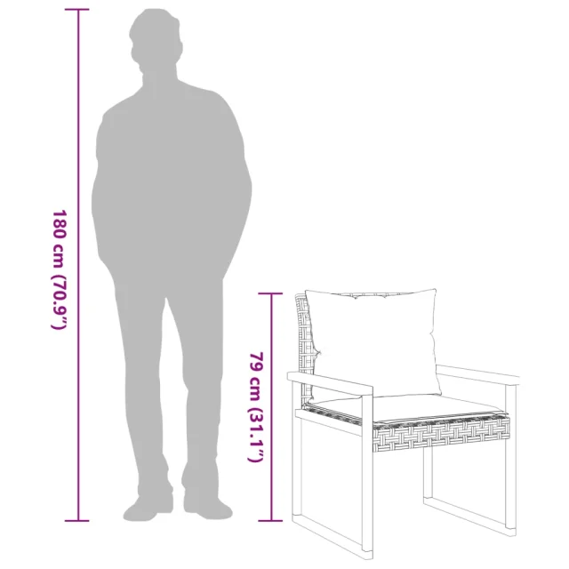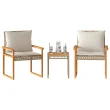 vidaXL Bistro garnitura 3-delna z blazinami bež poli ratan les akacije