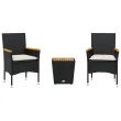 vidaXL Bistro garnitura 3-delna z blazinami črn poli ratan in steklo