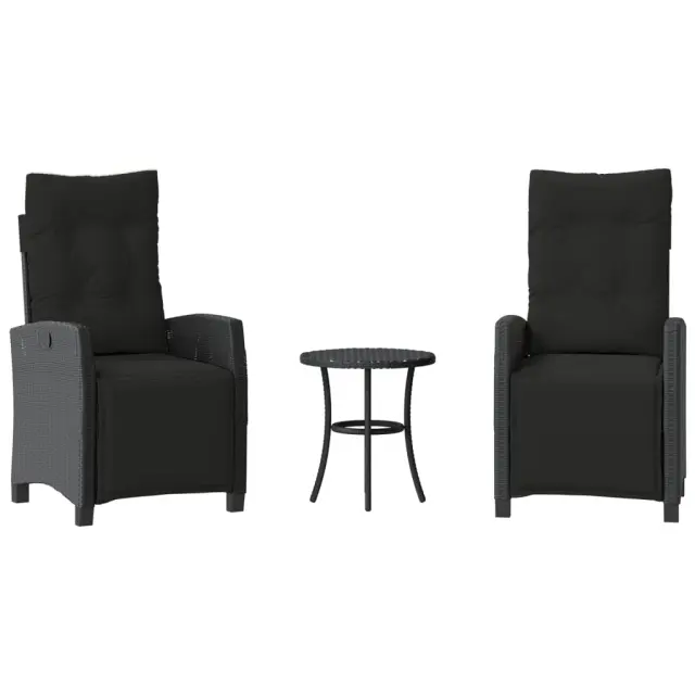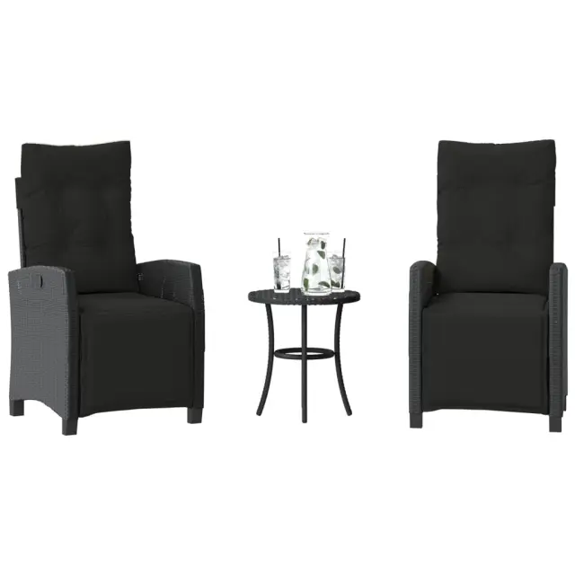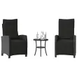 vidaXL Bistro garnitura 3-delna z blazinami črn poli ratan