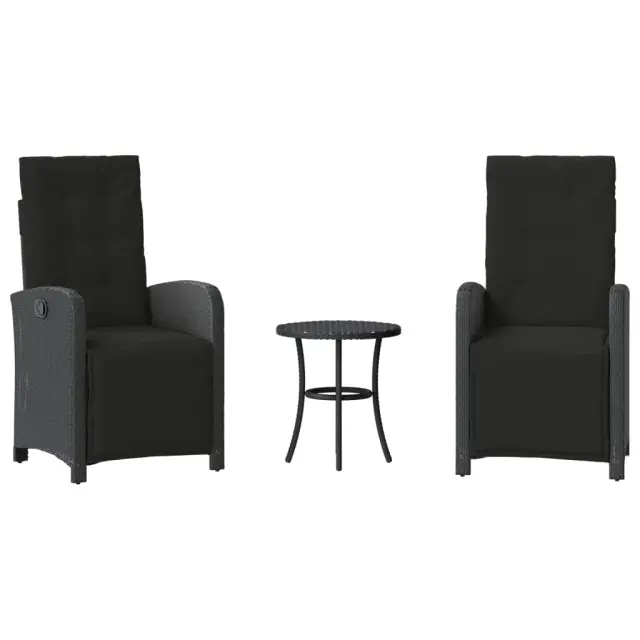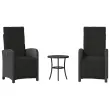 vidaXL Bistro garnitura 3-delna z blazinami črn poli ratan