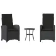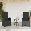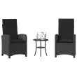 vidaXL Bistro garnitura 3-delna z blazinami črn poli ratan
