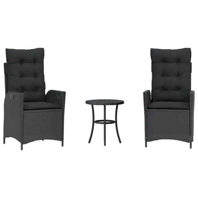 vidaXL Bistro garnitura 3-delna z blazinami črn poli ratan