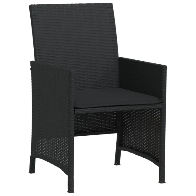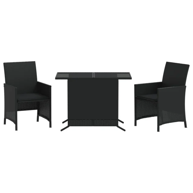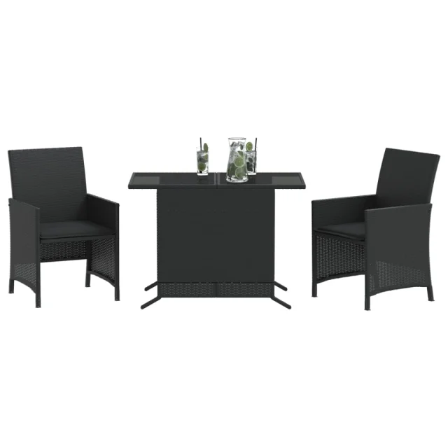 vidaXL Bistro garnitura 3-delna z blazinami črn poli ratan