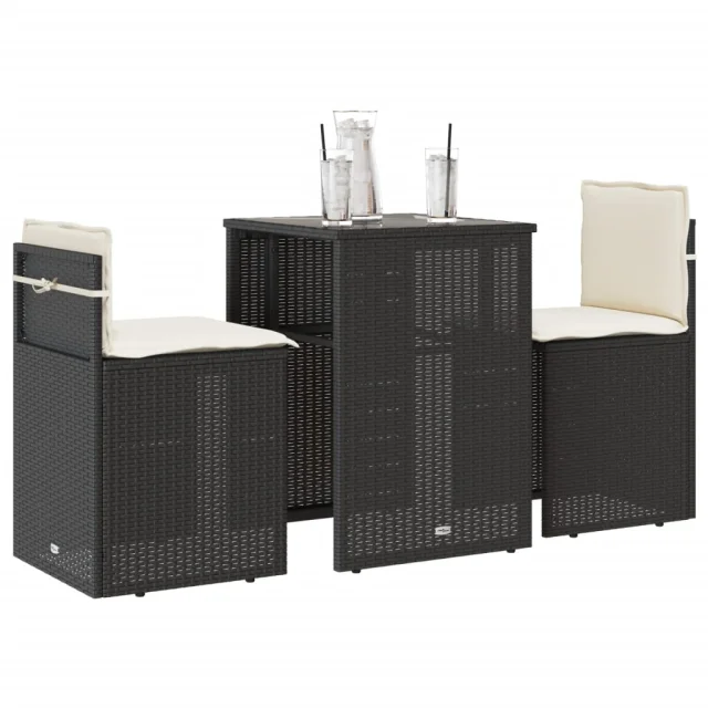 vidaXL Bistro garnitura 3-delna z blazinami črn poli ratan