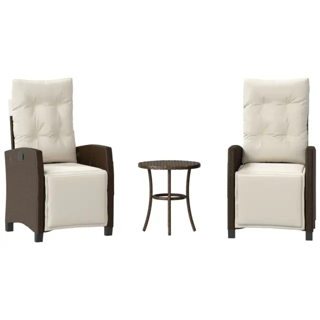 vidaXL Bistro garnitura 3-delna z blazinami rjav poli ratan