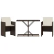 vidaXL Bistro garnitura 3-delna z blazinami rjav poli ratan