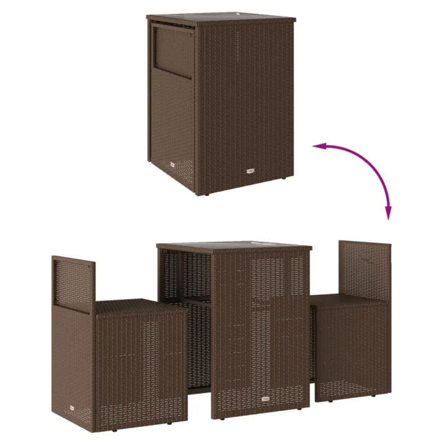 vidaXL Bistro garnitura 3-delna z blazinami rjav poli ratan