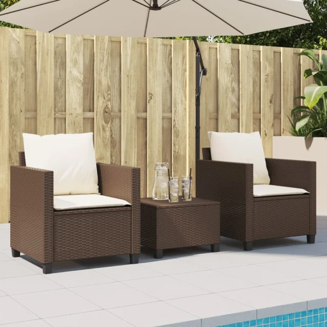 vidaXL Bistro garnitura 3-delna z blazinami rjav poli ratan