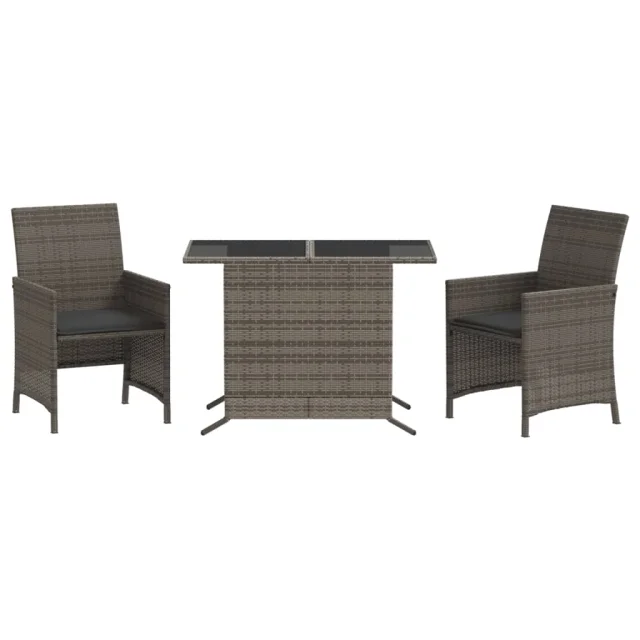 vidaXL Bistro garnitura 3-delna z blazinami siv poli ratan