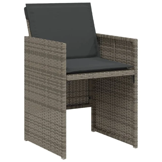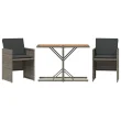 vidaXL Bistro garnitura 3-delna z blazinami siv poli ratan
