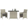 vidaXL Bistro garnitura 3-delna z blazinami svetlo siv poli ratan