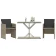 vidaXL Bistro garnitura 3-delna z blazinami svetlo siv poli ratan