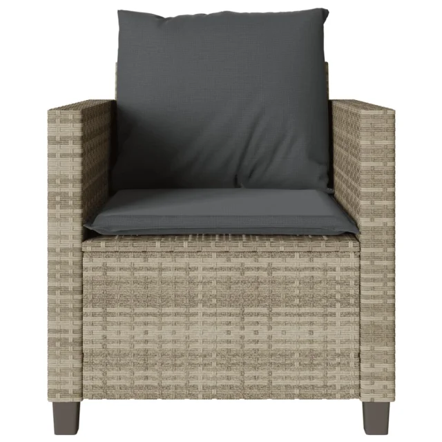 vidaXL Bistro garnitura 3-delna z blazinami svetlo siv poli ratan