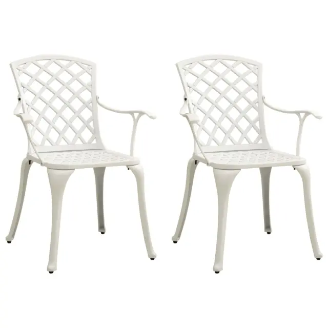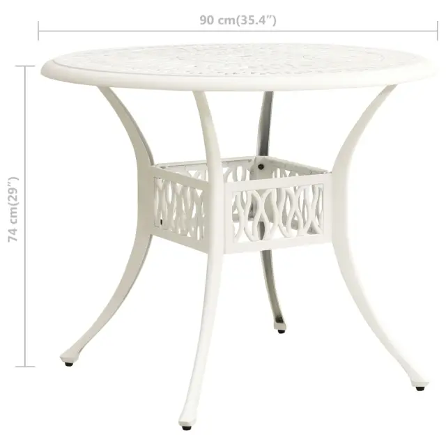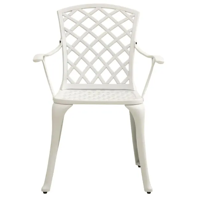 Ta bistro garnitura iz litega aluminija bo vam in vašim gostom nudila udobno sedenje. Vrtni stoli in miza iz aluminija so trdni in vzdržljivi. Material je odporen na rjo in vremenske vplive, zato je komplet pohištva idealen za uporabo na prostem. Čudoviti vzorci zagotavljajo, da bo bistro garnitura eleganten dodatek za vaš zunanji prostor. Klubska mizica ima odprtino za senčnik, da boste lahko namestili senčnik, ki vas bo zaščitil pred soncem ali dežjem. Opomba: Da bi podaljšali življenjsko dobo vašega zunanjega pohištva, vam priporočamo, da ga zaščitite z vodoodporno prevleko.Barva: BelaMaterial: Liti aluminijDimenzije stola: 61 x 60 x 93 cm (Š x G x V)Dimenzije mize: 90 x 74 cm (premer x V)Potrebno sestavljanje: DaPaket vsebuje:2 x Vrtni stol1 x Miza 3070585