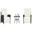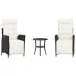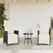 Uživajte v kavi ali klepetu z družino in prijatelji na vrtu, dvorišču ali balkonu s tem udobnim bistro kompletom! Vzdržljiv material: PE ratan, znan tudi kot poli ratan, je močan sintetični material, ki zahteva malo vzdrževanja in je videti kot naravni ratan. Je lahek, enostaven za čiščenje in se zaradi svoje vzdržljivosti in odpornosti na vremenske vplive pogosto uporablja za zunanje pohištvo.Nastavljivo naslonjalo za hrbet in podnožje: Ta vrtni sedež ima ročaj. Naslonjalo za hrbet in naslonjalo za noge lahko s potegom ročaja nastavite v poljuben položaj in ju hitro vrnete v prvotni položaj. Udobno sedenje: Ta zunanji komplet pohištva z debelo oblazinjenimi blazinami zagotavlja udobno sedenje.Prevleko je mogoče odstraniti in oprati: Te sedežne blazine imajo odstranljive prevleke za lažje pranje in vzdrževanje.Robusten in stabilen okvir: Prašno barvan jekleni okvir zagotavlja, da je vrtno pohištvo močno in stabilno za vsakodnevno uporabo na prostem. Dobro je vedeti:Če želite, da vaše zunanje pohištvo ostane lepo, vam priporočamo, da ga zaščitite z vodoodporno prevleko.UV-odpornoPotrebno sestavljanje: DaStol z naslonjalom:Barva: ČrnaMaterial: PE ratan, jeklen okvir s prašnim premazomDimenzije v sedečem položaju: 57 x 61 x 93 cm (Š x G x V)Dimenzije v ležečem položaju: 57 x 115 x 83 cm (Š x G x V)Velikost sedeža: 47 x 50 cm (Š x G)Višina sedeža od tal: 44 cmVišina naslonjala za roke, merjena od tal: 64 cmMaksimalna nosilnost (na sedež): 110 kgMiza:Barva: ČrnaMaterial: PE ratan, jeklen okvir s prašnim premazomDimenzije: 45 x 50 cm (Premer x V)Blazina:Barva: Kremno belaMaterial prevleke: Tkanina (100 % poliester)Polnilo sedežne blazine: PenaPolnilo hrbtne blazine: bombažna vlaknaDimenzije sedežne blazine: 48 x 85 x 3 cm (Š x G x D)Dimenzije hrbtne blazine: 48 x 67 x 11 cm (D x Š x D) Paket vsebuje:2 x Vrtni stol s funkcijo nagiba1 x Vrtna miza2 x Sedežna blazina s snemljivo pralno prevleko2 x Blazina za hrbet 365296