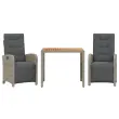 vidaXL Bistro garnitura 3-delna z blazinami siv poli ratan
