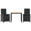 vidaXL Bistro garnitura 3-delna z blazinami črn poli ratan