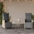 Uživajte v kavi ali klepetu z družino in prijatelji na vrtu, dvorišču ali balkonu s tem udobnim bistro kompletom! Vzdržljiv material: PE ratan, znan tudi kot poli ratan, je močan sintetični material, ki zahteva malo vzdrževanja in je videti kot naravni ratan. Je lahek, enostaven za čiščenje in se zaradi svoje vzdržljivosti in odpornosti na vremenske vplive pogosto uporablja za zunanje pohištvo.Nastavljivo naslonjalo za hrbet in podnožje: Ta vrtni sedež ima ročaj. Naslonjalo za hrbet in naslonjalo za noge lahko s potegom ročaja nastavite v poljuben položaj in ju hitro vrnete v prvotni položaj. Udobno sedenje: Ta zunanji komplet pohištva z debelo oblazinjenimi blazinami zagotavlja udobno sedenje.Prevleko je mogoče odstraniti in oprati: Te sedežne blazine imajo odstranljive prevleke za lažje pranje in vzdrževanje.Robusten in stabilen okvir: Prašno barvan jekleni okvir zagotavlja, da je vrtno pohištvo močno in stabilno za vsakodnevno uporabo na prostem. Dobro je vedeti:Če želite, da vaše zunanje pohištvo ostane lepo, vam priporočamo, da ga zaščitite z vodoodporno prevleko.UV-odpornoPotrebno sestavljanje: DaStol z naslonjalom:Barva: Mešano bežMaterial: PE ratan, jeklen okvir s prašnim premazomDimenzije v sedečem položaju: 57 x 61 x 93 cm (Š x G x V)Dimenzije v ležečem položaju: 57 x 115 x 83 cm (Š x G x V)Velikost sedeža: 47 x 50 cm (Š x G)Višina sedeža od tal: 44 cmVišina naslonjala za roke, merjena od tal: 64 cmMaksimalna nosilnost (na sedež): 110 kgMiza:Barva: Mešano bežMaterial: PE ratan, jeklen okvir s prašnim premazomDimenzije: 45 x 50 cm (Premer x V)Blazina:Barva: Svetlo sivaMaterial prevleke: Tkanina (100 % poliester)Polnilo sedežne blazine: PenaPolnilo hrbtne blazine: bombažna vlaknaDimenzije sedežne blazine: 48 x 85 x 3 cm (Š x G x D)Dimenzije hrbtne blazine: 48 x 67 x 11 cm (D x Š x D) Paket vsebuje:2 x Vrtni stol s funkcijo nagiba1 x Vrtna miza2 x Sedežna blazina s snemljivo pralno prevleko2 x Blazina za hrbet 365301