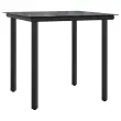 Uživajte v kavi ali klepetu z družino in prijatelji na vrtu, dvorišču ali balkonu s tem udobnim bistro kompletom! Vzdržljiv material: PE ratan, znan tudi kot poli ratan, je močan sintetični material, ki zahteva malo vzdrževanja in je videti kot naravni ratan. Je lahek, enostaven za čiščenje in se zaradi svoje vzdržljivosti in odpornosti na vremenske vplive pogosto uporablja za zunanje pohištvo.Udobno sedenje: Ta zunanji komplet pohištva z debelo oblazinjenimi blazinami zagotavlja udobno sedenje.Prevleko je mogoče odstraniti in oprati: Te sedežne blazine imajo odstranljive prevleke za lažje pranje in vzdrževanje.Steklena mizna plošča: Površina zunanje mize je izdelana iz močnega in trpežnega kaljenega stekla, kar omogoča enostavno čiščenje z vlažno krpo in vašemu zunanjemu prostoru doda pridih elegance. Dobro je vedeti:Če želite, da vaše zunanje pohištvo ostane lepo, vam priporočamo, da ga zaščitite z vodoodporno prevleko.UV-odpornoPotrebno sestavljanje: DaMiza:Barva: ČrnaMaterial: Jeklo s prašnim premazom, kaljeno stekloDimenzije: 80 x 80 x 74 cm (Š x G x V)Stol:Barva: Svetlo sivaMaterial: PE ratan, jeklen okvir s prašnim premazomDimenzije: 58,5 x 67 x 86 cm (Š x G x V)Velikost sedeža: 48 x 51 cm (Š x G)Višina sedeža od tal (brez blazine): 42 cmVišina naslonjala za roke, merjena od tal: 63 cmMaksimalna nosilnost (na sedež): 110 kgSedežna blazina:Barva: AntracitnaMaterial prevleke: Tkanina (100 % poliester)Polnilo sedežne blazine: PenaPolnilo hrbtne blazine: bombažna vlaknaDimenzije sedežne blazine: 49 x 51 x 3 cm (Š x G x D)Dimenzije hrbtne blazine: 50 x 50 x 11 cm (Š x G x D)Paket vsebuje:1 x Miza2 x Stol2 x Blazina za hrbet2 x Sedežna blazina s snemljivo pralno prevleko 3212173