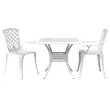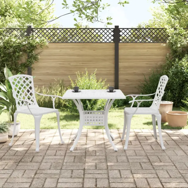 S to bistro garnituro lahko z družino ali prijatelji uživate v skodelici kave ali klepetu na vrtu, dvorišču ali balkonu! Trpežen in vzdržljiv okvir: Vrtni bistro komplet je izdelan iz litega aluminija in je dovolj trpežen in vzdržljiv za dolgotrajno uporabo. Zaradi materiala, ki je odporen na rjo in vremenske vplive, je idealna za celoletno uporabo na prostem.Udobno sedenje: Visoko naslonjalo in sedež z votlo obliko sta udobna in elegantna. Ergonomsko ukrivljeni nasloni za roke lahko učinkovito sprostijo tudi vaše roke.Praktična oblika: Ta vrtna miza ima luknjo za senčnik, v katero lahko popolnoma namestite senčnik in se zaščitite pred soncem ali dežjem.Široka uporaba: Bistro garnitura je kot nalašč za vsako verando, teraso, dvorišče, zelenico, vrt itd. Dobro je vedeti:Če želite, da vaše zunanje pohištvo ostane lepo, vam priporočamo, da ga zaščitite z vodoodporno prevleko.Vrtna miza:Barva: BelaMaterial: Liti aluminijDimenzije: 80 x 80 x 75 cm (D x Š x V)Vrtni stol:Barva: BelaMaterial: Liti aluminijDimenzije: 61 x 60 x 93 cm (D x Š x V)Maksimalna nosilnost (na sedež): 110 kgPotrebno sestavljanje: DaPaket vsebuje:1 x Vrtna miza2 x Vrtni stol 3216347
