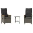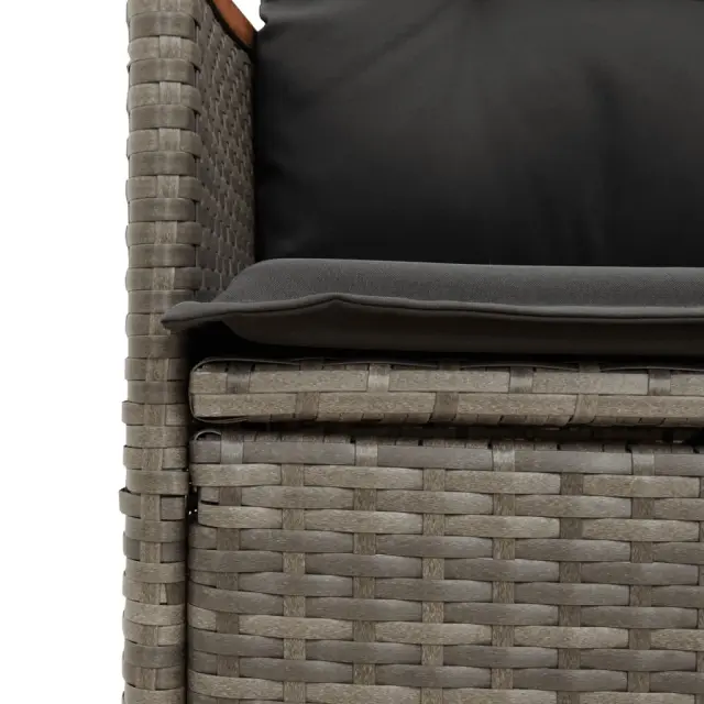 S to udobno bistro garnituro lahko z družino in prijatelji uživate v kavi ali klepetu na vrtu, dvorišču ali balkonu. Vzdržljiv material: PE ratan, znan tudi kot poli ratan, je močan sintetični material, ki zahteva malo vzdrževanja in je videti kot naravni ratan. Je lahek, enostaven za čiščenje in se zaradi svoje vzdržljivosti in odpornosti na vremenske vplive pogosto uporablja za zunanje pohištvo.Nastavljivo naslonjalo: Ta vrtni sedež ima ročaj. S potegom ročaja lahko naslonjalo nastavite v poljuben položaj in ga hitro vrnete v prvotni položaj.Udobno sedenje: Ta zunanja garnitura z debelo podloženimi blazinami zagotavlja udobno sedenje.Prevleko je mogoče odstraniti in oprati: Te sedežne blazine imajo odstranljive prevleke za lažje pranje in vzdrževanje. Hrbtne blazine imajo na zadnji strani zavihek za enostavno pritrditev na naslonjala.Robusten in stabilen okvir: Prašno barvan jekleni okvir zagotavlja, da je vrtno pohištvo močno in stabilno za vsakodnevno uporabo na prostem. Dobro je vedeti:Če želite, da vaše zunanje pohištvo ostane lepo, vam priporočamo, da ga zaščitite z vodoodporno prevleko.UV-odpornoPotrebno sestavljanje: DaVrtni naslanjač:Barva: SivaMaterial: PE ratan, prašno premazano jeklo, trden akacijev les z oljnim premazomDimenzije v sedečem položaju: 56 x 59 x 92 cm (Š x G x V)Dimenzije v ležečem položaju: 56 x 83 x 85 cm (Š x G x V)Velikost sedišča: 49 x 50,5 cm (Š × G)Višina sedeža od tal: 44 cmVišina naslonjala za roke, merjena od tal: 63 cmMaksimalna nosilnost (na sedež): 110 kgMiza:Barva: SivaMaterial: PE ratan, jeklen okvir s prašnim premazomDimenzije: 45 x 50 cm (Premer x V)Premer spodnje police: 36 cmBlazina:Barva: Temno sivaMaterial prevleke: Tkanina (100 % poliester)Polnilo sedežne blazine: PenaPolnilo hrbtne blazine: bombažna vlaknaDimenzije sedežne blazine: 48 x 50 x 3 cm (Š x G x D)Dimenzije hrbtne blazine: 70 x 48 x 10 cm (D x Š x D)Paket vsebuje:2 x Vrtni stol s funkcijo nagiba1 x Vrtna miza2 x Sedežna blazina s snemljivo pralno prevleko2 x Blazina za hrbet 365658