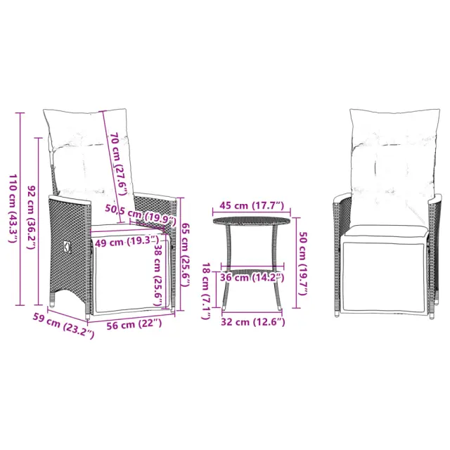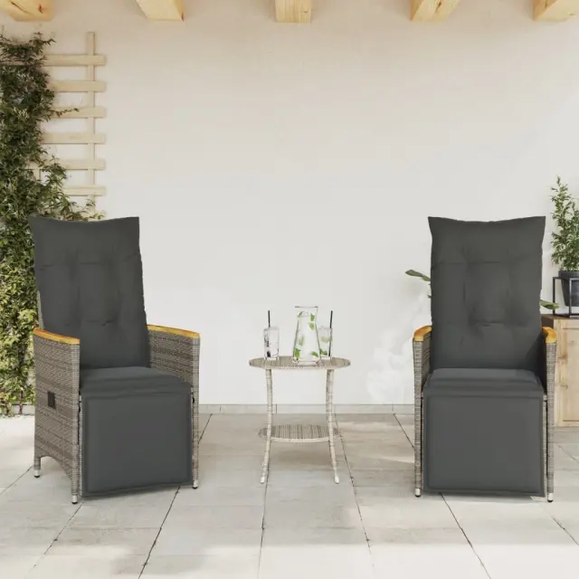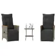 vidaXL Bistro garnitura 3-delna z blazinami siv poli ratan