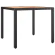 S to udobno bistro garnituro lahko z družino in prijatelji uživate v kavi ali klepetu na vrtu, dvorišču ali balkonu. Vzdržljiv material: PE ratan, znan tudi kot poli ratan, je močan sintetični material, ki zahteva malo vzdrževanja in je videti kot naravni ratan. Je lahek, enostaven za čiščenje in se zaradi svoje vzdržljivosti in odpornosti na vremenske vplive pogosto uporablja za zunanje pohištvo.Nastavljivo naslonjalo za hrbet in podnožje: Ta vrtni sedež ima ročaj. Naslonjalo za hrbet in naslonjalo za noge lahko s potegom ročaja nastavite v poljuben položaj in ju hitro vrnete v prvotni položaj.Stabilna mizna plošča, ki je enostavna za čiščenje: Ta vrtna miza ima ploščo iz akacijevega lesa, ki je čvrsta, vzdržljiva in jo je enostavno čistiti z vlažno krpo.Udobno sedenje: Ta zunanja garnitura z debelo podloženimi blazinami zagotavlja udobno sedenje.Prevleko je mogoče odstraniti in oprati: Te sedežne blazine imajo odstranljive prevleke za lažje pranje in vzdrževanje. Hrbtne blazine imajo na zadnji strani zavihek za enostavno pritrditev na naslonjala. Dobro je vedeti:Če želite, da vaše zunanje pohištvo ostane lepo, vam priporočamo, da ga zaščitite z vodoodporno prevleko.UV-odpornoPotrebno sestavljanje: DaNastavljiv stol z oporo za noge:Barva: ČrnaMaterial: PE ratan, jeklen okvir s prašnim premazomDimenzije v sedečem položaju: 56 x 59 x 92 cm (Š x G x V)Dimenzije v ležečem položaju: 56 x 83 x 85 cm (Š x G x V)Velikost sedišča: 49 x 50,5 cm (Š × G)Višina sedeža od tal: 44 cmVišina naslonjala za roke, merjena od tal: 63 cmMaksimalna nosilnost (na sedež): 110 kgMiza:Barva: ČrnaMaterial: PE ratan, jeklo, trden akacijev les z oljnim premazomDimenzije: 90 x 90 x 75 cm (D x Š x V)Blazina:Barva: Kremno belaMaterial prevleke: Tkanina (100 % poliester)Polnilo sedežne blazine: PenaPolnilo hrbtne blazine: bombažna vlaknaDimenzije sedežne blazine: 48 x 90 x 3 cm (Š x G x D)Dimenzije hrbtne blazine: 70 x 48 x 10 cm (D x Š x D)Paket vsebuje:2 x Vrtni stol z oporo za noge1 x Vrtna miza2 x Sedežna blazina s snemljivo pralno prevleko2 x Blazina za hrbet 3276855