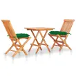 vidaXL Bistro garnitura z zelenimi blazinami 3-delna trdna tikovina