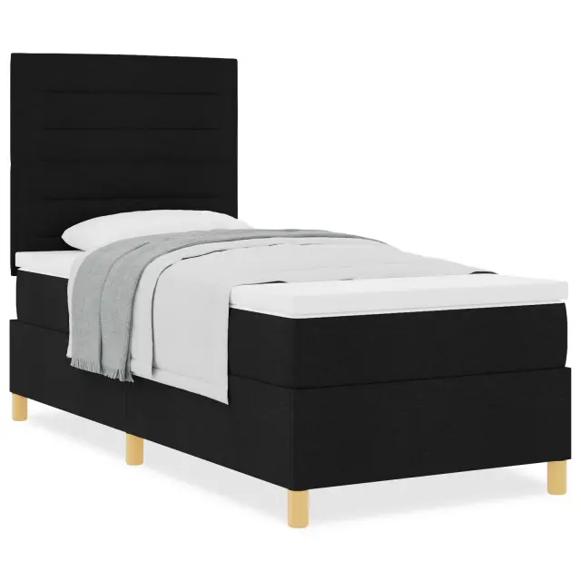 Ta Boks vzmetnica z vzmetnico je ključna za tvojo spalnico, ker nudi neprimerljivo udobje in sodoben izgled. Njena elegantna črna tkanina združuje funkcionalnost z dobrim stilom, kar krepi prijeten občutek v tvojem prostoru.