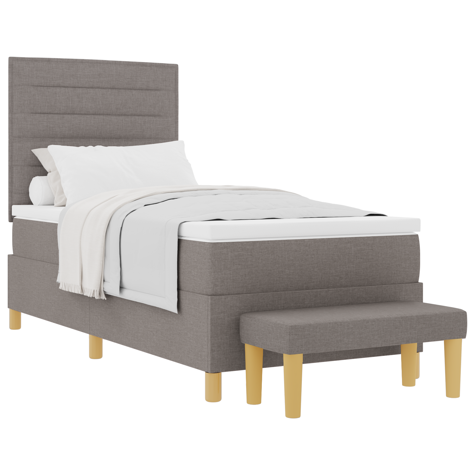 Ta boks vzmetnica združuje udobje in stil, kar jo naredi super izbira za vsakogar, ki želi nadgraditi svojo spalnico. S trendovskim taupe oblazinjenjem in močnim lesenim okvirjem, to ni samo postelja; to je izjava, ki prinaša eleganco in sprostitev v vsak prostor, udobno prilegajoč se enemu odraslemu.
