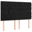 Uporabite to box spring posteljo za uživanje v mirnem spancu! Ponuja maksimalno sprostitev in prijeten spanec. Mehak žamet: Žamet je mehka in razkošna tkanina, ki jo prepoznamo po gostem kupu enakomerno rezanih gladkih vlaken. Žametna tkanina ima značilen mehak občutek, zaradi česar je prijetna na dotik.Praktično vzglavje: Vzglavje postelje je nastavljivo po višini po vaših željah. To vzglavje za posteljo vam zagotavlja odlično oporo za hrbet, ko sedite na postelji in berete ali gledate filme.Ležišče z žepkastimi vzmetmi: Vgrajena individualna žepkasta vzmet je znana po zelo visoki kakovosti, hkrati pa zagotavlja visoko stopnjo vzdržljivosti in prilagodljivosti. Lahko učinkovito absorbira hrup in udarce, ki jih povzročata metanje in obračanje.Srednje trda opora: Posteljna vzmetnica odlično zagotavlja dodatno stabilnost in ravno pravšnjo stopnjo čvrstosti, ne da bi pri tem žrtvovala udobje. Zato je idealna za tiste, ki spijo na hrbtu ali trebuhu.Koži prijazen nadvložek: Zaščita za ležišče ima trpežno in koži prijazno tkanino, zaradi česar je mehka in udobna.Večnamenska klop: Ta klop lahko služi kot dodaten sedež v vašem domu. Lahko se uporablja tudi kot zaključek posteljne klopi. Opomba:Zaradi higienskih razlogov vzmetnice ni mogoče vrniti po odstranitvi ali odprtju embalaže.Vsakemu izdelku je priložen priročnik za enostavno sestavljanje.Postelja:Barva: ČrnaMaterial: Žamet (100 % poliester), vezan les, konstruiran lesDimenzije: 203 x 144 x 118/128 cm (D x Š x V)Vzmetnica za posteljo:Barva: Črna in belaMaterial: Žamet (100 % poliester)Material polnila: Žepkaste vzmeti, penaDimenzije: 140 x 200 x 20 cm (Š x D x V)Nadvložek:Barva: BelaMaterial: Blago (100 % poliester)Material polnila: PenaDimenzije: 140 x 200 x 5 cm (Š x D x V)Klop:Barva: ČrnaMaterial: Žamet (100 % poliester), vezan les, konstruiran lesDimenzije: 100 x 30 x 30 cm (Š x G x V)Paket vsebuje:1 x Posteljni okvir1 x Vzglavje1 x Vzmetnica1 x Nadvložek1 x Klop 3138027
