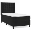 Uporabite to box spring posteljo za uživanje v mirnem spancu! Ponuja maksimalno sprostitev in prijeten spanec. Mehak žamet: Žamet je mehka in razkošna tkanina, ki jo prepoznamo po gostem kupu enakomerno rezanih gladkih vlaken. Žametna tkanina ima značilen mehak občutek, zaradi česar je prijetna na dotik.Praktično vzglavje: Vzglavje postelje je nastavljivo po višini po vaših željah. To vzglavje za posteljo vam zagotavlja odlično oporo za hrbet, ko sedite na postelji in berete ali gledate filme.Ležišče z žepkastimi vzmetmi: Vgrajena individualna žepkasta vzmet je znana po zelo visoki kakovosti, hkrati pa zagotavlja visoko stopnjo vzdržljivosti in prilagodljivosti. Lahko učinkovito absorbira hrup in udarce, ki jih povzročata metanje in obračanje.Srednje trda opora: Posteljna vzmetnica odlično zagotavlja dodatno stabilnost in ravno pravšnjo stopnjo čvrstosti, ne da bi pri tem žrtvovala udobje. Zato je idealna za tiste, ki spijo na hrbtu ali trebuhu.Koži prijazen nadvložek: Zaščita za ležišče ima trpežno in koži prijazno tkanino, zaradi česar je mehka in udobna. Opomba:Zaradi higienskih razlogov vzmetnice ni mogoče vrniti po odstranitvi ali odprtju embalaže.Vsakemu izdelku je priložen priročnik za enostavno sestavljanje.Postelja:Barva: ČrnaMaterial: Žamet (100 % poliester), trden macesnov les, vezan les, inženirski lesDimenzije: 193 x 93 x 118/128 cm (D x Š x V)Vzmetnica za posteljo:Barva: Bela in črnaMaterial: Žamet (100 % poliester)Material polnila: Žepkaste vzmeti, penaDimenzije: 90 x 190 x 20 cm (Š x D x V)Nadvložek:Barva: BelaMaterial nadvložka: Blago (100 % poliester)Material polnila: PenaDimenzije: 90 x 190 x 5 cm (Š x D x V)Paket vsebuje:1 x Posteljni okvir1 x Vzglavje z ušesi1 x Vzmetnica1 x Nadvložek 3132893