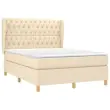 Uporabite to box spring posteljo za uživanje v mirnem spancu! Ponuja maksimalno sprostitev in prijeten spanec. Trpežno blago: Blago zagotavlja preprost in čist videz, poleg tega pa je zračno in trpežno.Praktično vzglavje: Vzglavje postelje je nastavljivo po višini po vaših željah. To vzglavje za posteljo vam zagotavlja odlično oporo za hrbet, ko sedite na postelji in berete ali gledate filme.Ležišče z žepkastimi vzmetmi: Vgrajena individualna žepkasta vzmet je znana po zelo visoki kakovosti, hkrati pa zagotavlja visoko stopnjo vzdržljivosti in prilagodljivosti. Lahko učinkovito absorbira hrup in udarce, ki jih povzročata metanje in obračanje.Srednje trda opora: Posteljna vzmetnica odlično zagotavlja dodatno stabilnost in ravno pravšnjo stopnjo čvrstosti, ne da bi pri tem žrtvovala udobje. Zato je idealna za tiste, ki spijo na hrbtu ali trebuhu.Koži prijazen nadvložek: Zaščita za ležišče ima trpežno in koži prijazno tkanino, zaradi česar je mehka in udobna. Opomba:Zaradi higienskih razlogov vzmetnice ni mogoče vrniti po odstranitvi ali odprtju embalaže.Vsakemu izdelku je priložen priročnik za enostavno sestavljanje.Postelja:Barva: KremMaterial: Blago (100 % poliester), trden macesnov les, vezan les, inženirski lesDimenzije: 203 x 147 x 118/128 cm (D x Š x V)Vzmetnica za posteljo:Barva: Bela in kremnaMaterial: Blago (100 % poliester)Material polnila: Žepkaste vzmeti, penaDimenzije: 140 x 200 x 20 cm (Š x D x V)Nadvložek:Barva: BelaMaterial nadvložka: Blago (100 % poliester)Material polnila: PenaDimenzije: 140 x 200 x 5 cm (Š x D x V)Paket vsebuje:1 x Posteljni okvir1 x Vzglavje z ušesi1 x Vzmetnica1 x Nadvložek 3128770