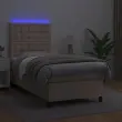 Uporabite to box spring posteljo z vzmetnico in LED osvetlitvijo in uživajte v mirnem spancu! To bo osrednja točka vaše spalnice. Trpežno umetno usnje: Vrhunsko umetno usnje je zelo vzdržljiv material. Je odporno na madeže, zato ga lahko preprosto čistite z vlažno krpo. Gladka površina mu prav tako daje razkošen videz in lepoto pravega usnja.Praktično vzglavje: Vzglavje postelje je nastavljivo po višini po vaših željah. To vzglavje za posteljo vam zagotavlja odlično oporo za hrbet, ko sedite na postelji in berete ali gledate filme.Barvit LED trak: Vnesite igrivost v temo z barvitimi LED lučkami!Ležišče z žepkastimi vzmetmi: Vgrajena individualna žepkasta vzmet je znana po zelo visoki kakovosti, hkrati pa zagotavlja visoko stopnjo vzdržljivosti in prilagodljivosti. Lahko učinkovito absorbira hrup in udarce, ki jih povzročata metanje in obračanje.Koži prijazen nadvložek: Zaščita za ležišče ima trpežno in koži prijazno tkanino, zaradi česar je mehka in udobna. Opomba:Zaradi higienskih razlogov vzmetnice ni mogoče vrniti po odstranitvi ali odprtju embalaže.Režete lahko samo del s simbolom škarij in samo del z USB bo deloval kot prej.Vsakemu izdelku je priložen priročnik za enostavno sestavljanje.Izdelek ima priključek USB, vendar certificiran 5V vir napajanja USB ni priložen.Postelja:Barva: KapučinoMaterial: Umetno usnje (75 % polivinilklorid, 5 % bombaž, 20 % poliester), vezan les, inženirski les, trden macesnov lesCelotne dimenzije: 203 x 90 x 118/128 cm (D x Š x V)Vzmetnica za posteljo:Barva: Bela in kapučinoMaterial: Umetno usnje (75 % polivinilklorid, 5 % bombaž, 20 % poliester)Material polnila: Žepkaste vzmeti, penaDimenzije: 90 x 200 x 20 cm (Š x D x V)Nadvložek:Barva: BelaMaterial nadvložka: Blago (100 % poliester)Material polnila: PenaDimenzije: 90 x 200 x 5 cm (Š x D x V)LED trak:Dolžina: 55 cmNapetost: DC 5 VDolžina kabla USB : 150 cmDolžina električnega kabla: 30 cmIP ocena: IP65S simbolom za rezanje s škarjamiPaket vsebuje:1 x Posteljni okvir1 x Vzglavje1 x Vzmetnica1 x Nadvložek1 x LED trak 3135926