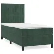 Uporabite to box spring posteljo za uživanje v mirnem spancu! Ponuja maksimalno sprostitev in prijeten spanec. Mehak žamet: Žamet je mehka in razkošna tkanina, ki jo prepoznamo po gostem kupu enakomerno rezanih gladkih vlaken. Žametna tkanina ima značilen mehak občutek, zaradi česar je prijetna na dotik.Praktično vzglavje: Vzglavje postelje je nastavljivo po višini po vaših željah. To vzglavje za posteljo vam zagotavlja odlično oporo za hrbet, ko sedite na postelji in berete ali gledate filme.Ležišče z žepkastimi vzmetmi: Vgrajena individualna žepkasta vzmet je znana po zelo visoki kakovosti, hkrati pa zagotavlja visoko stopnjo vzdržljivosti in prilagodljivosti. Lahko učinkovito absorbira hrup in udarce, ki jih povzročata metanje in obračanje.Srednje trda opora: Posteljna vzmetnica odlično zagotavlja dodatno stabilnost in ravno pravšnjo stopnjo čvrstosti, ne da bi pri tem žrtvovala udobje. Zato je idealna za tiste, ki spijo na hrbtu ali trebuhu.Koži prijazen nadvložek: Zaščita za ležišče ima trpežno in koži prijazno tkanino, zaradi česar je mehka in udobna. Opomba:Zaradi higienskih razlogov vzmetnice ni mogoče vrniti po odstranitvi ali odprtju embalaže.Vsakemu izdelku je priložen priročnik za enostavno sestavljanje.Postelja:Barva: Temno zelenaMaterial: Žamet (100 % poliester), vezan les, konstruiran lesCelotne dimenzije: 193 x 90 x 118/128 cm (D x Š x V)Vzmetnica za posteljo:Barva: Bela in temno zelenaMaterial: Žamet (100 % poliester)Material polnila: Žepkaste vzmeti, penaDimenzije: 90 x 190 x 20 cm (Š x D x V)Nadvložek:Barva: BelaMaterial nadvložka: Blago (100 % poliester)Material polnila: PenaDimenzije: 90 x 190 x 5 cm (Š x D x V)Paket vsebuje:1 x Posteljni okvir1 x Vzglavje1 x Vzmetnica1 x Nadvložek 3143118