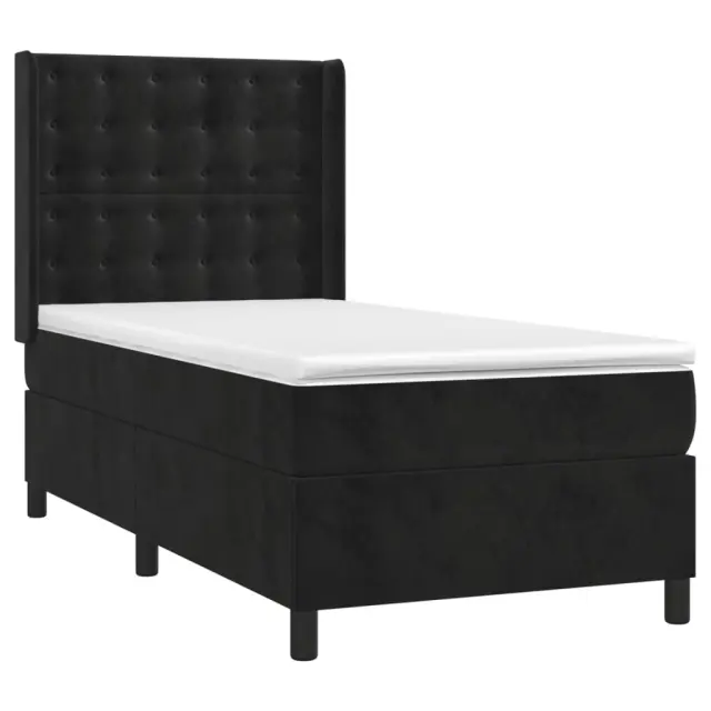 Uporabite to box spring posteljo za uživanje v mirnem spancu! Ponuja maksimalno sprostitev in prijeten spanec. Mehak žamet: Žamet je mehka in razkošna tkanina, ki jo prepoznamo po gostem kupu enakomerno rezanih gladkih vlaken. Žametna tkanina ima značilen mehak občutek, zaradi česar je prijetna na dotik.Praktično vzglavje: Vzglavje postelje je nastavljivo po višini po vaših željah. To vzglavje za posteljo vam zagotavlja odlično oporo za hrbet, ko sedite na postelji in berete ali gledate filme.Ležišče z žepkastimi vzmetmi: Vgrajena individualna žepkasta vzmet je znana po zelo visoki kakovosti, hkrati pa zagotavlja visoko stopnjo vzdržljivosti in prilagodljivosti. Lahko učinkovito absorbira hrup in udarce, ki jih povzročata metanje in obračanje.Srednje trda opora: Posteljna vzmetnica odlično zagotavlja dodatno stabilnost in ravno pravšnjo stopnjo čvrstosti, ne da bi pri tem žrtvovala udobje. Zato je idealna za tiste, ki spijo na hrbtu ali trebuhu.Koži prijazen nadvložek: Zaščita za ležišče ima trpežno in koži prijazno tkanino, zaradi česar je mehka in udobna. Opomba:Zaradi higienskih razlogov vzmetnice ni mogoče vrniti po odstranitvi ali odprtju embalaže.Vsakemu izdelku je priložen priročnik za enostavno sestavljanje.Postelja:Barva: ČrnaMaterial: Žamet (100 % poliester), trden macesnov les, vezan les, inženirski lesDimenzije: 203 x 93 x 118/128 cm (D x Š x V)Vzmetnica za posteljo:Barva: Bela in črnaMaterial: Žamet (100 % poliester)Material polnila: Žepkaste vzmeti, penaDimenzije: 90 x 200 x 20 cm (Š x D x V)Nadvložek:Barva: BelaMaterial nadvložka: Blago (100 % poliester)Material polnila: PenaDimenzije: 90 x 200 x 5 cm (Š x D x V)Paket vsebuje:1 x Posteljni okvir1 x Vzglavje z ušesi1 x Vzmetnica1 x Nadvložek 3132899