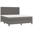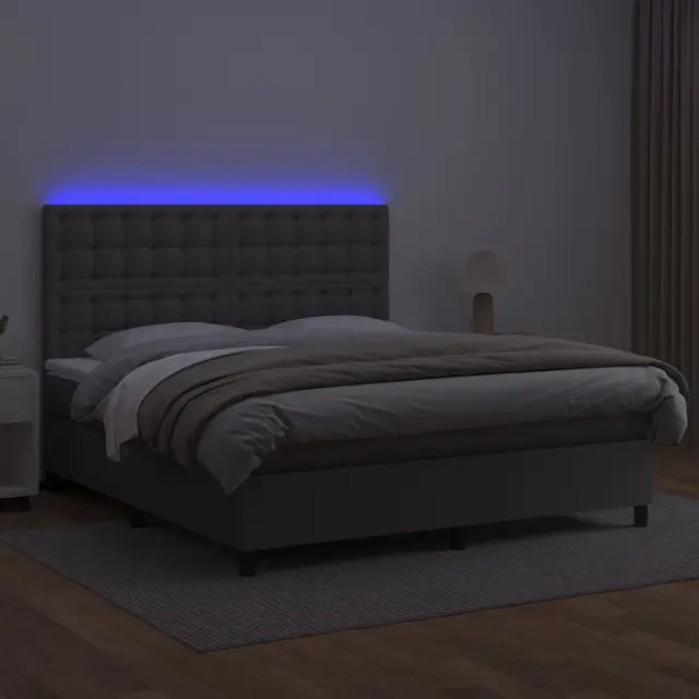 vidaXL Box spring postelja z vzmetnico LED siva 160x200cm umetno usnje