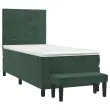 Uporabite to box spring posteljo za uživanje v mirnem spancu! Ponuja maksimalno sprostitev in prijeten spanec. Mehak žamet: Žamet je mehka in razkošna tkanina, ki jo prepoznamo po gostem kupu enakomerno rezanih gladkih vlaken. Žametna tkanina ima značilen mehak občutek, zaradi česar je prijetna na dotik.Praktično vzglavje: Vzglavje postelje je nastavljivo po višini po vaših željah. To vzglavje za posteljo vam zagotavlja odlično oporo za hrbet, ko sedite na postelji in berete ali gledate filme.Ležišče z žepkastimi vzmetmi: Vgrajena individualna žepkasta vzmet je znana po zelo visoki kakovosti, hkrati pa zagotavlja visoko stopnjo vzdržljivosti in prilagodljivosti. Lahko učinkovito absorbira hrup in udarce, ki jih povzročata metanje in obračanje.Srednje trda opora: Posteljna vzmetnica odlično zagotavlja dodatno stabilnost in ravno pravšnjo stopnjo čvrstosti, ne da bi pri tem žrtvovala udobje. Zato je idealna za tiste, ki spijo na hrbtu ali trebuhu.Koži prijazen nadvložek: Zaščita za ležišče ima trpežno in koži prijazno tkanino, zaradi česar je mehka in udobna.Večnamenska klop: Ta klop lahko služi kot dodaten sedež v vašem domu. Lahko se uporablja tudi kot zaključek posteljne klopi. Opomba:Zaradi higienskih razlogov vzmetnice ni mogoče vrniti po odstranitvi ali odprtju embalaže.Vsakemu izdelku je priložen priročnik za enostavno sestavljanje.Postelja:Barva: Temno zelenaMaterial: Žamet (100 % poliester), vezan les, konstruiran lesDimenzije: 203 x 100 x 118/128 cm (D x Š x V)Vzmetnica za posteljo:Barva: Temno zelena in belaMaterial: Žamet (100 % poliester)Material polnila: Žepkaste vzmeti, penaDimenzije: 100 x 200 x 20 cm (Š x D x V)Nadvložek:Barva: BelaMaterial: Blago (100 % poliester)Material polnila: PenaDimenzije: 100 x 200 x 5 cm (Š x D x V)Klop:Barva: Temno zelenaMaterial: Žamet (100 % poliester), vezan les, konstruiran lesDimenzije: 70 x 30 x 30 cm (Š x G x V)Paket vsebuje:1 x Posteljni okvir1 x Vzglavje1 x Vzmetnica1 x Nadvložek1 x Klop 3137830